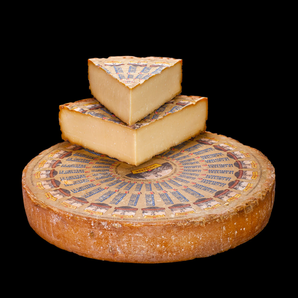 Gruyère Antique ist ein traditionsreicher Schweizer Hartkäse aus Kuhrohmilch. Rund 12 Monate gereift, zeigt er eine dichte, leicht kristalline Textur und ein vollmundiges Aromenspiel: würzig und rezent, mit Noten von gerösteten Nüssen, kräftiger Brühe/Umami und einem Hauch Karamell. Langer, trockener Abgang – typisch für sorgfältig gepflegte Laibe.